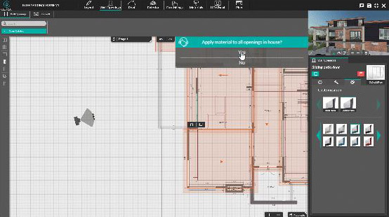 Ajout d’ouvrants, d’aménagements, de revêtements, et visualisation simultanément en 3D sans changer d’étape.