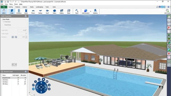 DreamPlan is an exterior home design software that also provides interior design capabilities. It is a good solution for homeowners because it is free for noncommercial use. The software is available for download and can be used to draw landscaping, pools, patios, decks, and home exteriors.