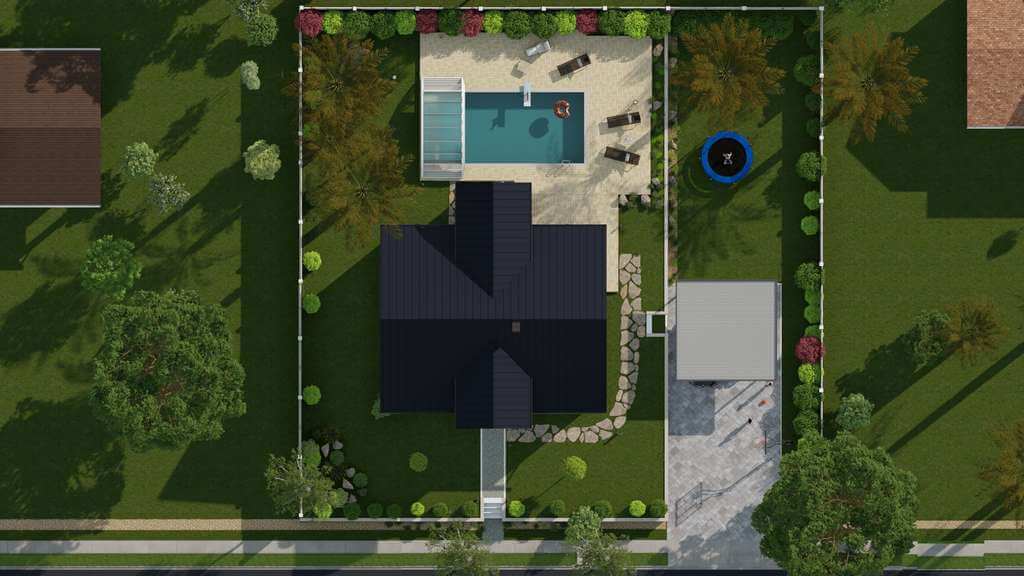 Site plans are also important for creating outdoor recreation and fitness areas. Want to include a pool, swing set, walking path, or outdoor patio? All it takes are just a few clicks in Cedreo.
